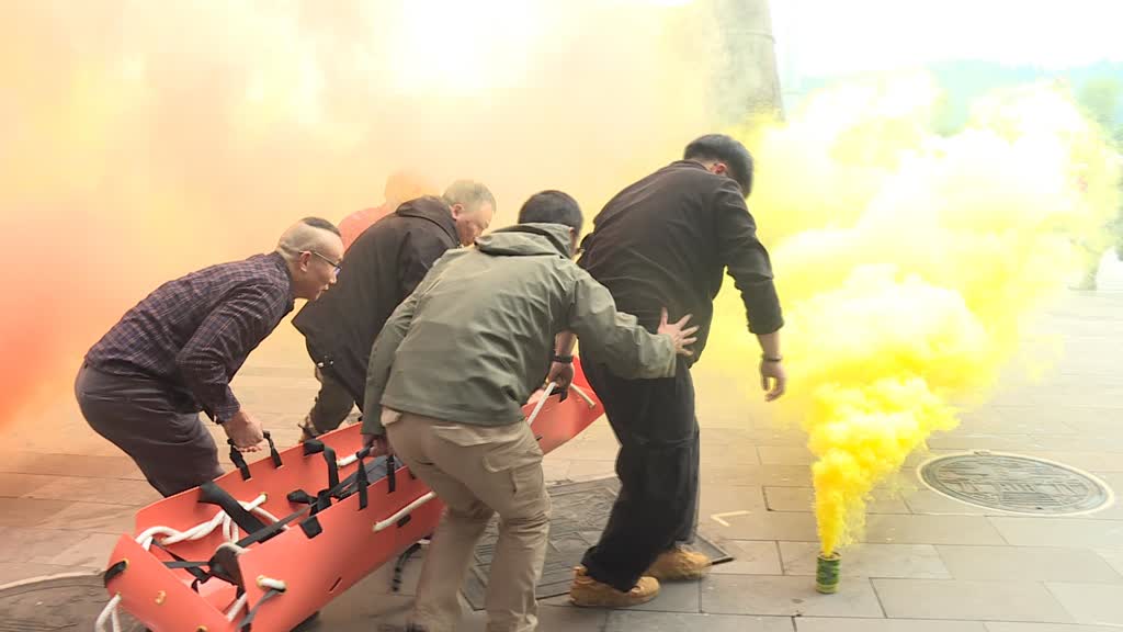 【锦屏镇东门社区党支部书记、居委会主任 向成:通过这次救援逃生演练,我们的社区干部以及广大居民掌握了一些基本的逃生知识,也提高了安全意识。】